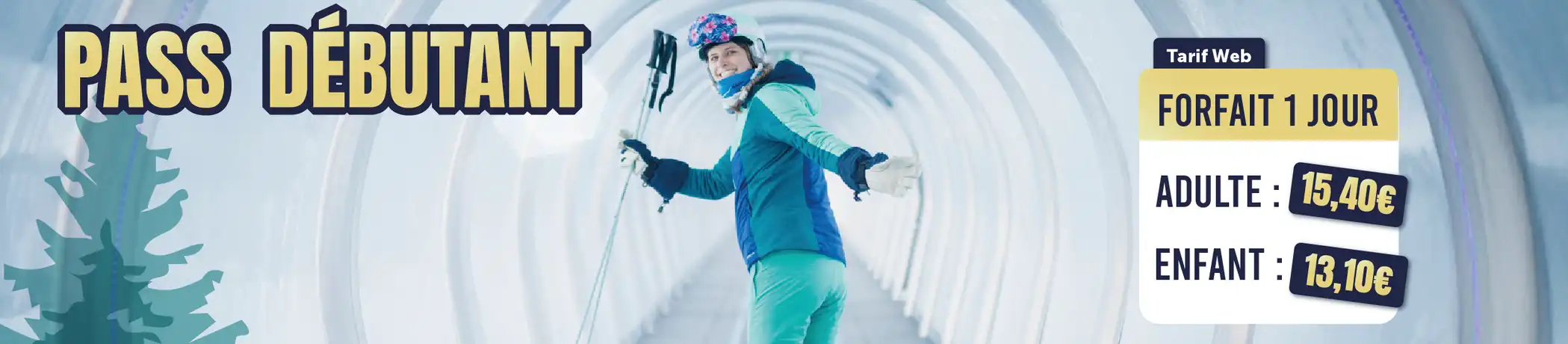 L'espace débutant est accessible avec un forfait Accès Tapis qui comprend l'accès aux 2 tapis débutants et à la piste Ecole uniquement.